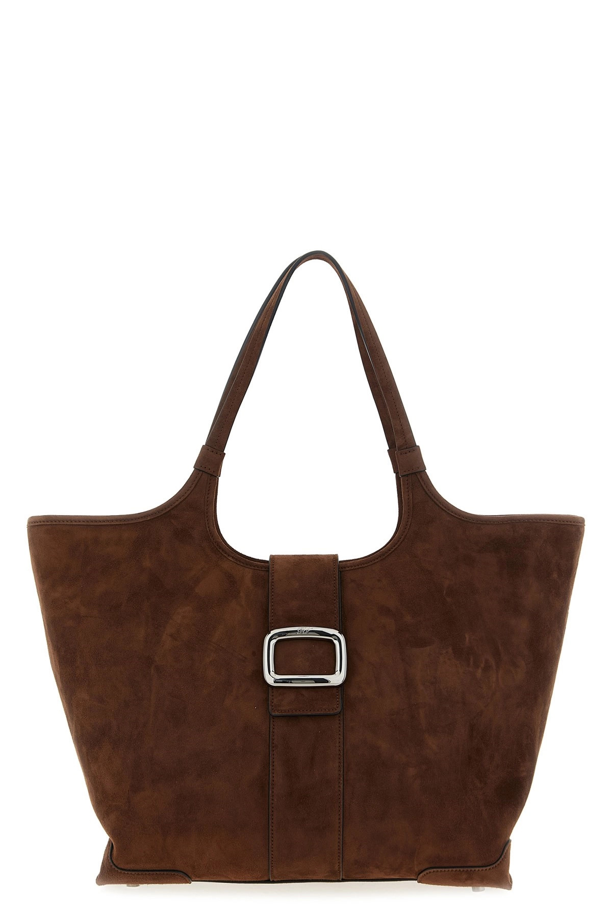 cod. RBWAOGAB300HR0S604 'Viv' Choc' midi suede shopping bag, magnetic flap closure with metal logo buckle, double fixed handle, adjustable width with inner strap. Color: Brown Size & Fit: W 32 (base) x H 29 x D 14 cm Composition: 100% goat leather (Capra Hircus Hircus) Made in: Italy