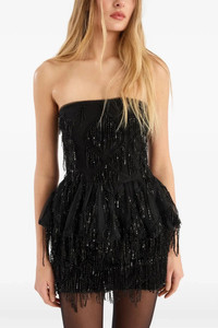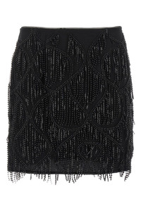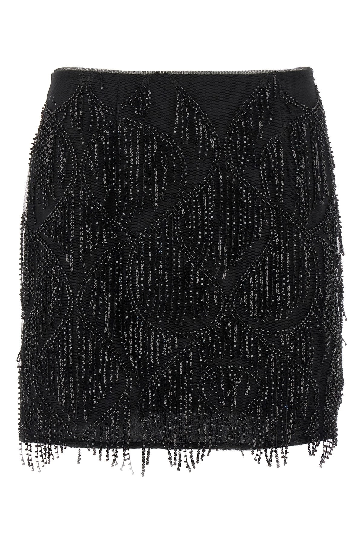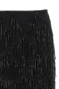 cod. 114623100100 Sequin embroidered fabric mini skirt finished with beaded fringes, side zip closure, viscose lining. Color: Black Size & Fit: slim fit - GERMAN size Composition: 97% viscose, 3% elastane Made in: China