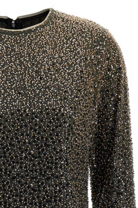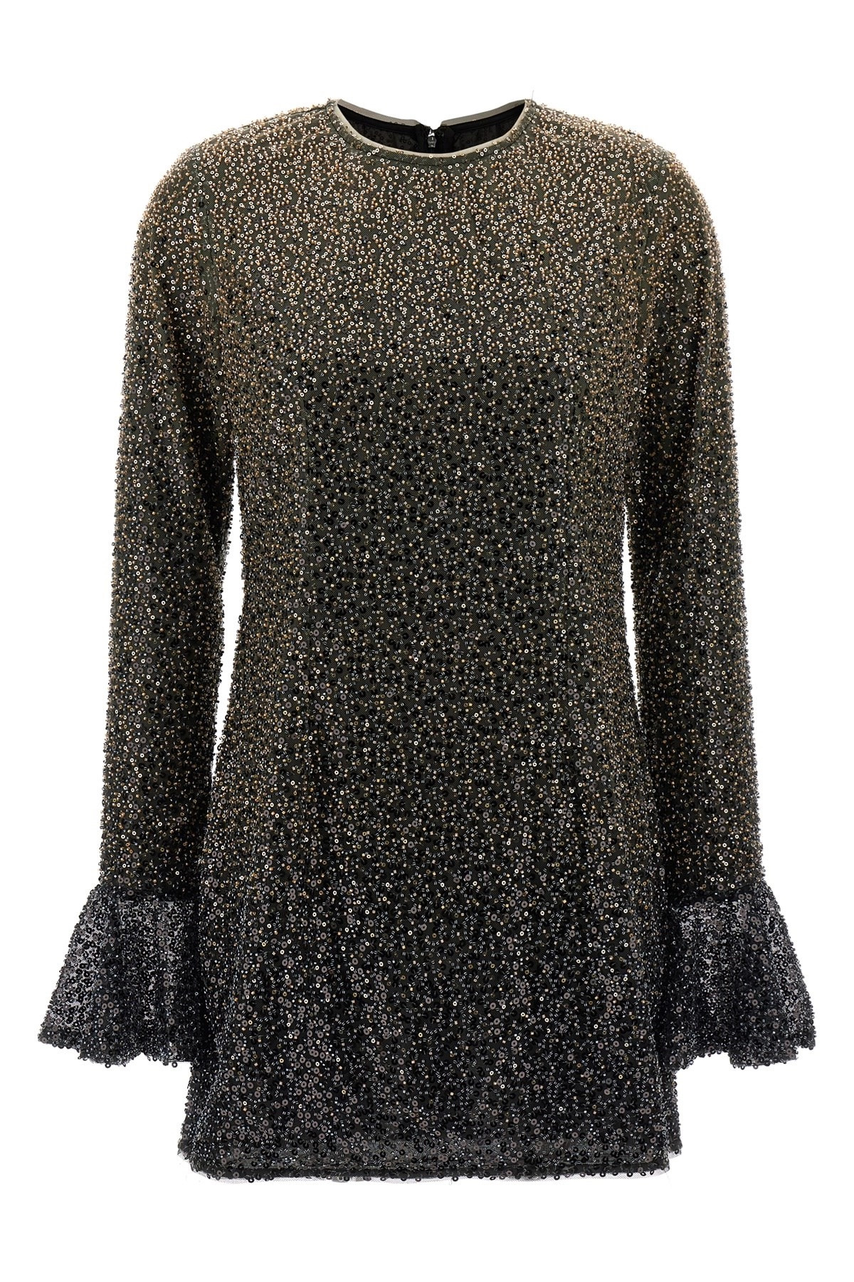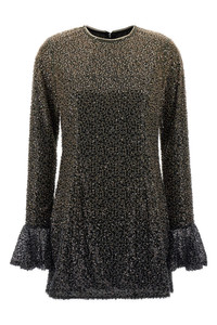 cod. 11498513481348 Beaded Ls Mini' fabric dress with all-over degrade sequin applique, crew neck, straight fit, long sleeves with bell cuffs, back zip closure, lining. SUSTAINABLE: Product made from recycled polyester. Color: Brown Size & Fit: true to size fit - GERMAN size Composition: 100% polyester Made in: China