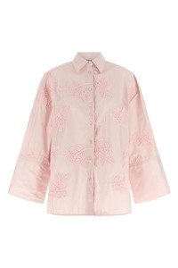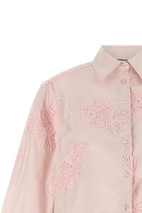 cod. 11510318091809 Cotton poplin shirt with all-over 3D floral embroidery, front button closure, long wide flared sleeves with cuffs and dropped shoulder, side slits, rounded hem. SUSTAINABLE: This product is made with organic cotton. Color: Pink Size & Fit: oversize fit - GERMAN size Composition: 100% cotton Made in: India