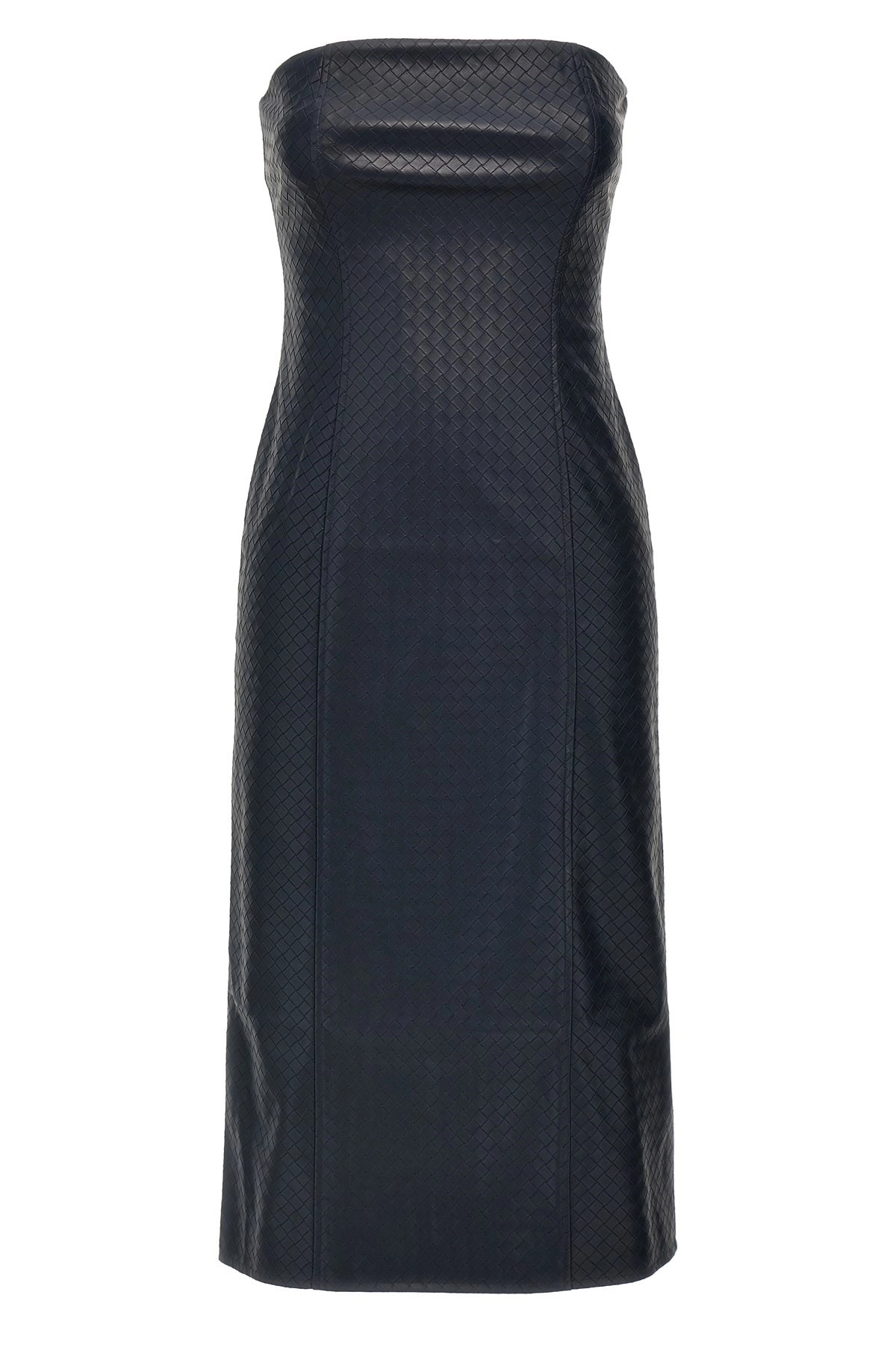 cod. 11285623182318 'Midi Braided' off-the-shoulder dress in woven leather-effect fabric with zip closure and back split. Color: Blue Size & Fit: true to size fit German size Composition: 100% polyester Made in: China