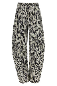 cod. 114339858858 'Printed Twill Cargo' pants in all-over animal print cotton canvas, mid-rise model, zip and button closure, wide shaped leg with knee curl, pockets, back leather logo tag. Color: White/Black Size & Fit: true to size fit - GERMAN size Composition: 100% cotton Made in: Turkey