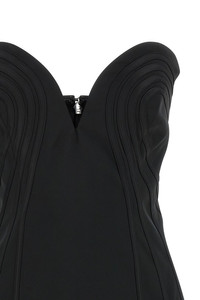 cod. 114417100100 'Satin Mini' satin dress with tone-on-tone decorations, off-the-shoulder model with sweetheart neckline, preformed cup and side cues, back zip closure, lining. SUSTAINABLE: Product made from recycled polyester. Color: Black Size & Fit: slim fit - GERMAN size Composition: 100% polyester Made in: China