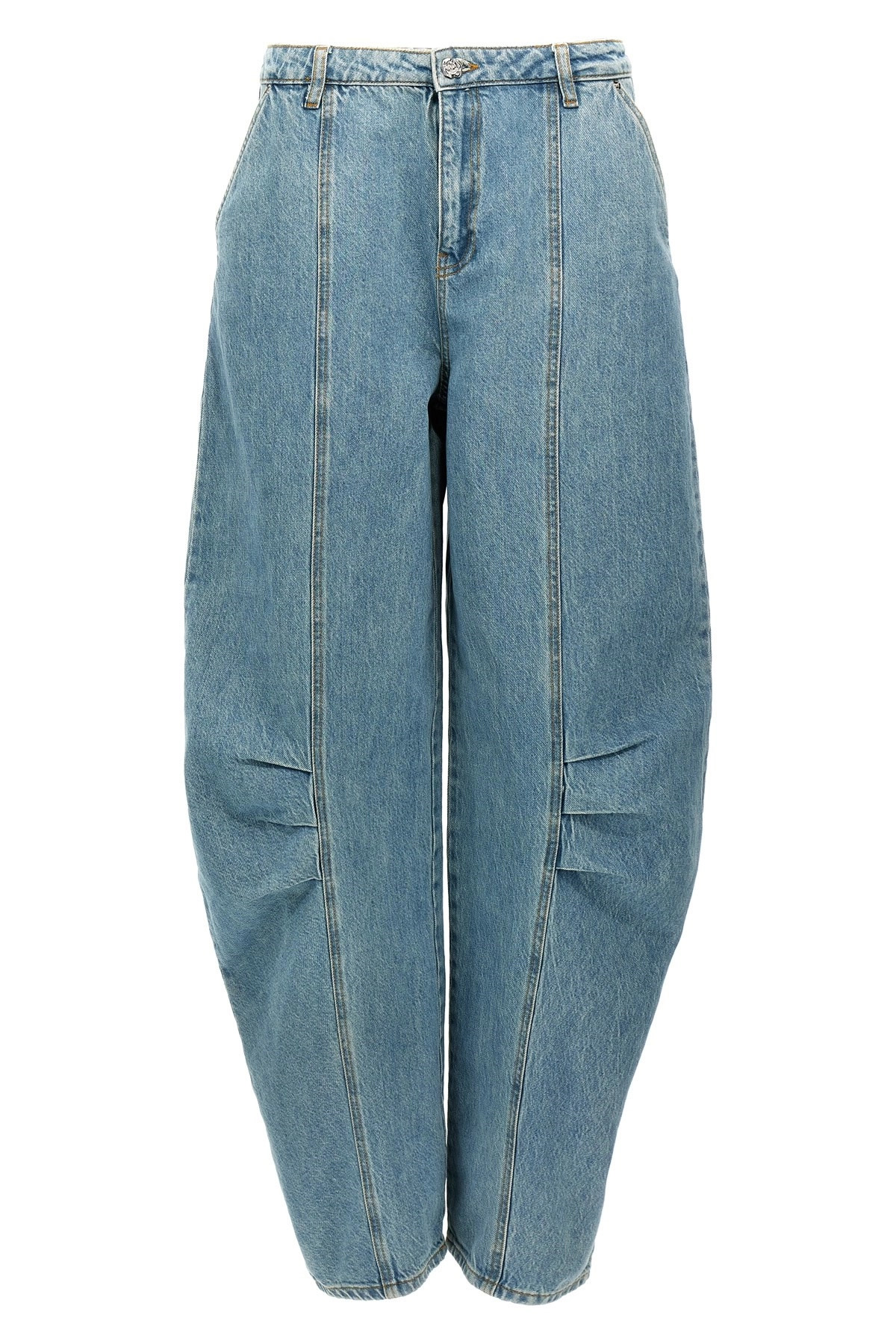 cod. 11364030493049 'Sculptured' cotton denim jeans with tone-on-tone logo patch at the back, high waist, zip and button closure, wide contoured leg with knee curl, five pockets. Color: Light Blue Size & Fit: true to size fit German size Composition: 100% cotton Made in: Turkey