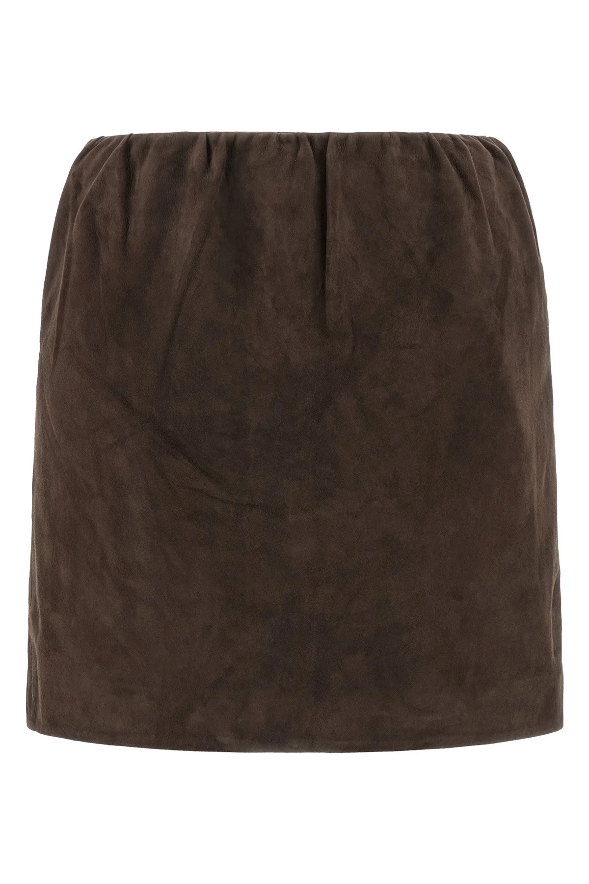 cod. 115579573573 Suede mini skirt, straight silhouette, back zip closure, lining. Color: Brown Size & Fit: slim fit - GERMAN size Composition: 100% goat leather (Capra Hircus Hircus) Made in: India