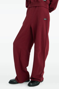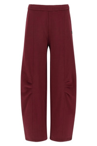 cod. 11438827342734 'Terry Back' terry joggers with high waist, straight leg with side pleats on the knee, front logo patch, adjustable drawstring elastic at the waist, pockets. SUSTAINABLE: This product is made of organic cotton. Color: Bordeaux Size & Fit: true to size fit Composition: 100% cotton Made in: Turkey