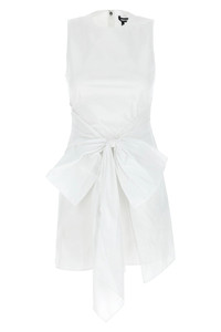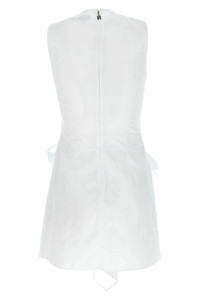 cod. 115302400400 Sleeveless W/Bow mini dress in cotton poplin with sheath dress with maxi front bow detail, back zip closure and logo charm. Color: White Size & Fit: True to size fit German sizing Composition: 100% cotton Made in: China