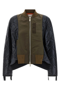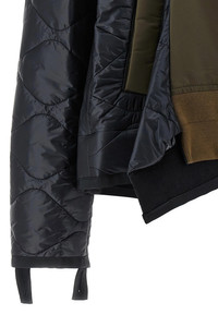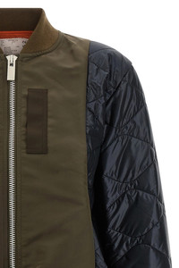 cod. 2508152532 Smooth and quilted two-material nylon bomber jacket with stretch knit and grosgrain details, front zip closure, pockets, long cuffed sleeves, back split, and asymmetric hem. Color: Multicolor Size & Fit: Comfort fit Composition: 100% nylon Made in: Japan