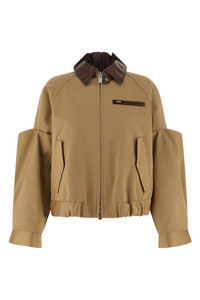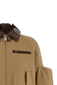 cod. 2608299651 Chinos cotton jacket with nappa details, striped cupro lining, blouson style, shirt collar, front zip closure, pockets, long cuffed sleeves with gusset insert, elastic hem. Color: Beige Size & Fit: true to size fit Composition: 100% cotton Made in: Japan
