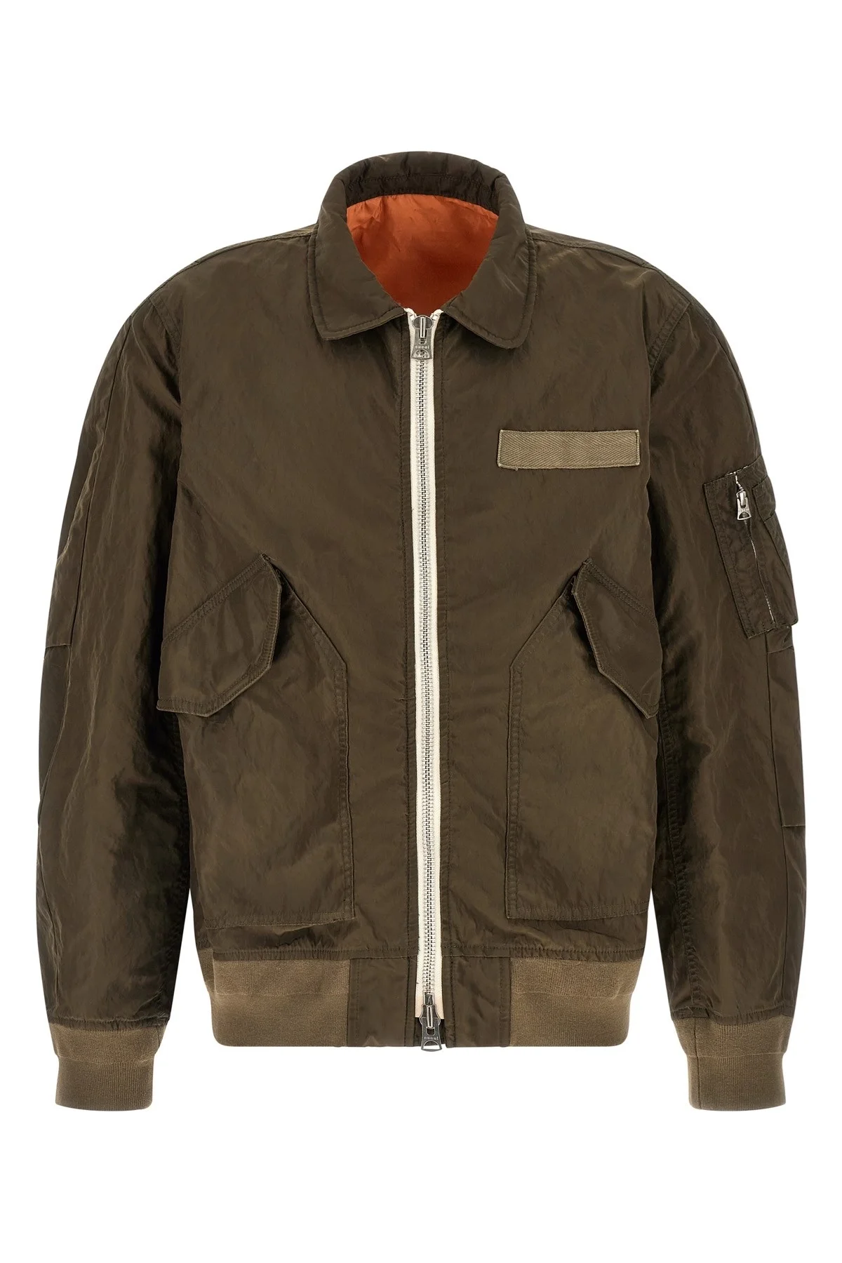 cod. 2603913M531 Crumpled effect treated nylon twill jacket with ribbed stretch knit details, shirt collar, front zip closure, pockets, long sleeves with cuffs and slightly dropped shoulder, and band on the hem. Color: Green Size & Fit: Comfort fit Composition: 100% nylon Made in: Japan