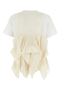 cod. 2507915101 Cotton jersey crew neck t-shirt, front pocket, back flounces, asymmetrical length. Color: White Size & Fit: True to size fit Composition: 100% cotton Made in: Japan