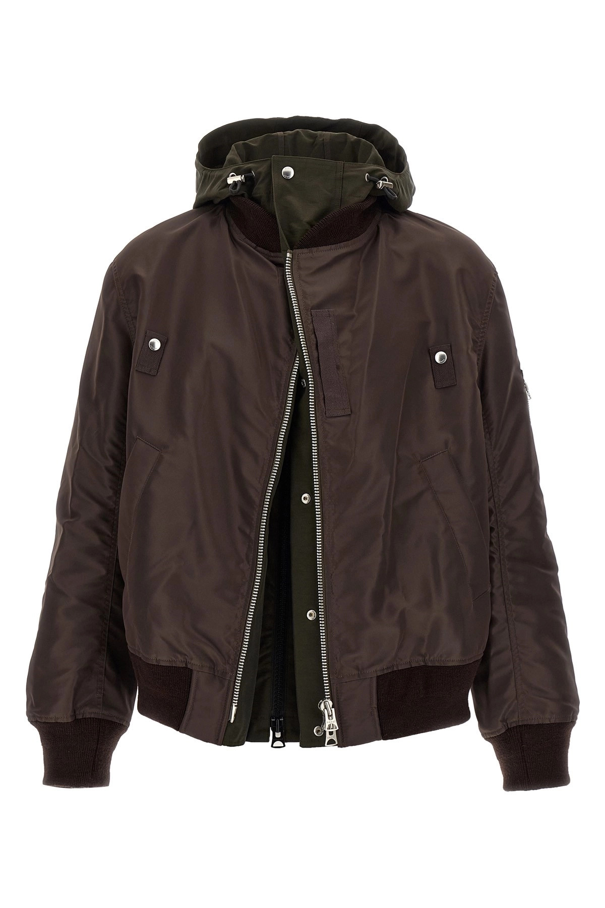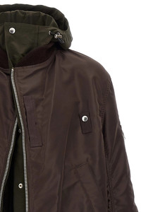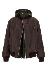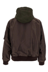 cod. 2503784M612 Nylon bomber jacket with twill insert and contrast hood, second inner zip closure, pockets, long sleeves with cuffs. Color: Brown Size & Fit: True to size fit Composition: 100% nylon Made in: China