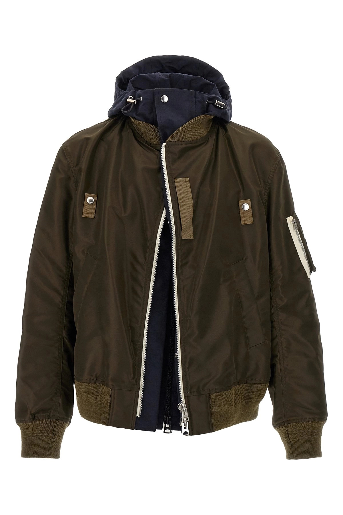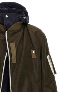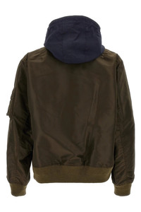 cod. 2503784M532 Nylon bomber jacket with twill insert and contrast hood, second inner zip closure, pockets, long sleeves with cuffs. Color: Multicolor Size & Fit: True to size fit Composition: 100% nylon Made in: China