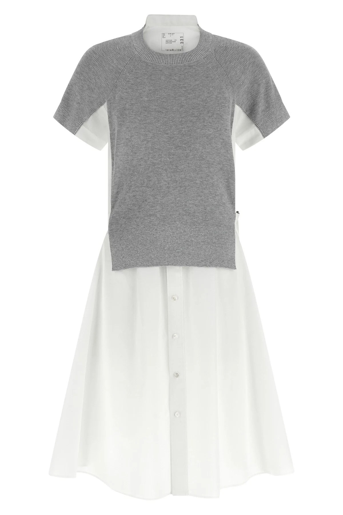 cod. SCW331378 Hybrid midi dress consisting of flared cotton poplin body with front button closure, short sleeves, removable belt and contrasting knitted cotton blend front and a crewneck. Color: White Size & Fit: true to size fit Composition: 100% cotton Made in: China