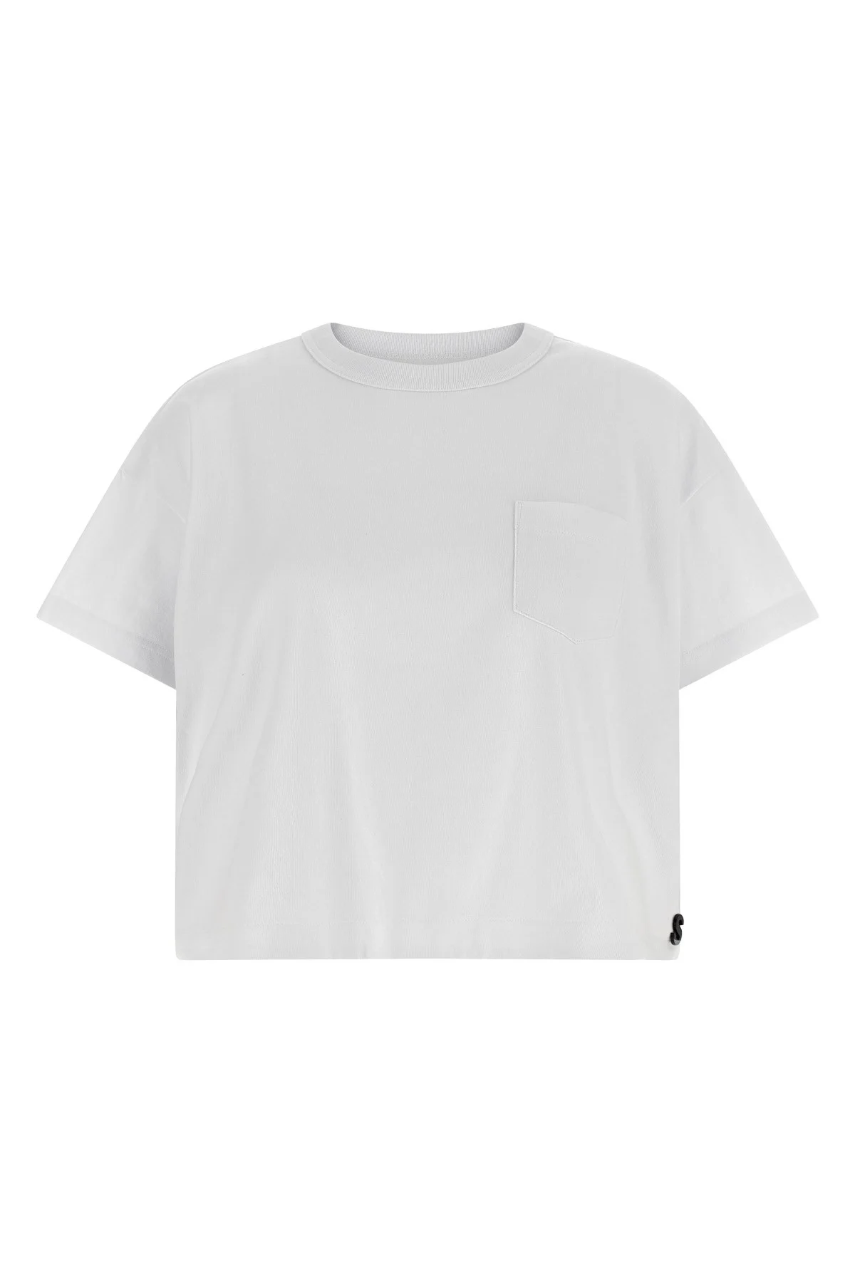 cod. SCW356101 Cotton jersey T-shirt, removable contrast metal logo pin, crew neck, chest pocket, short sleeves with dropped shoulders, side slits with snap buttons. Color: White Size & Fit: true to size fit Composition: 100% cotton Made in: Japan