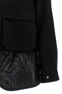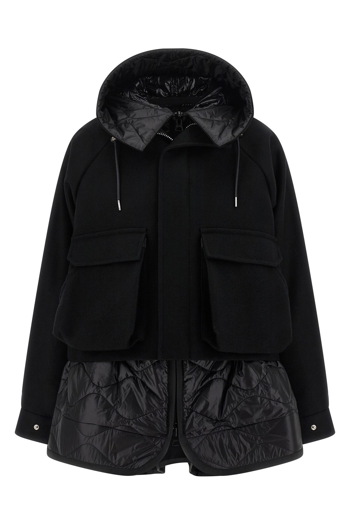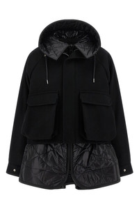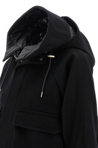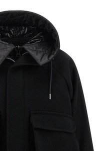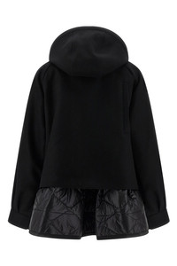 cod. 2508067001 'Melton' blouson consisting of wool outer part and quilted and slightly padded nylon inside, adjustable hood, front zip closure, pockets, long cuffed sleeves, asymmetrical hem. Color: Black Size & Fit: true to size fit Composition: 100% wool Made in: Japan