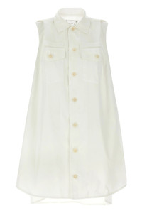 cod. 2507649151 Mini dress in cotton poplin, chemisier model, sleeveless, button closure, pockets. Color: White Size & Fit: Comfort fit Composition: 65% polyester, 35% cotton Made in: Japan