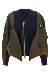 cod. 2507996532 Wool cardigan with nylon inserts, zip closure and bomber-effect long sleeves. Color: Multicolor Size & Fit: True to size fit Composition: 57% cotton, 43% polyester Made in: China