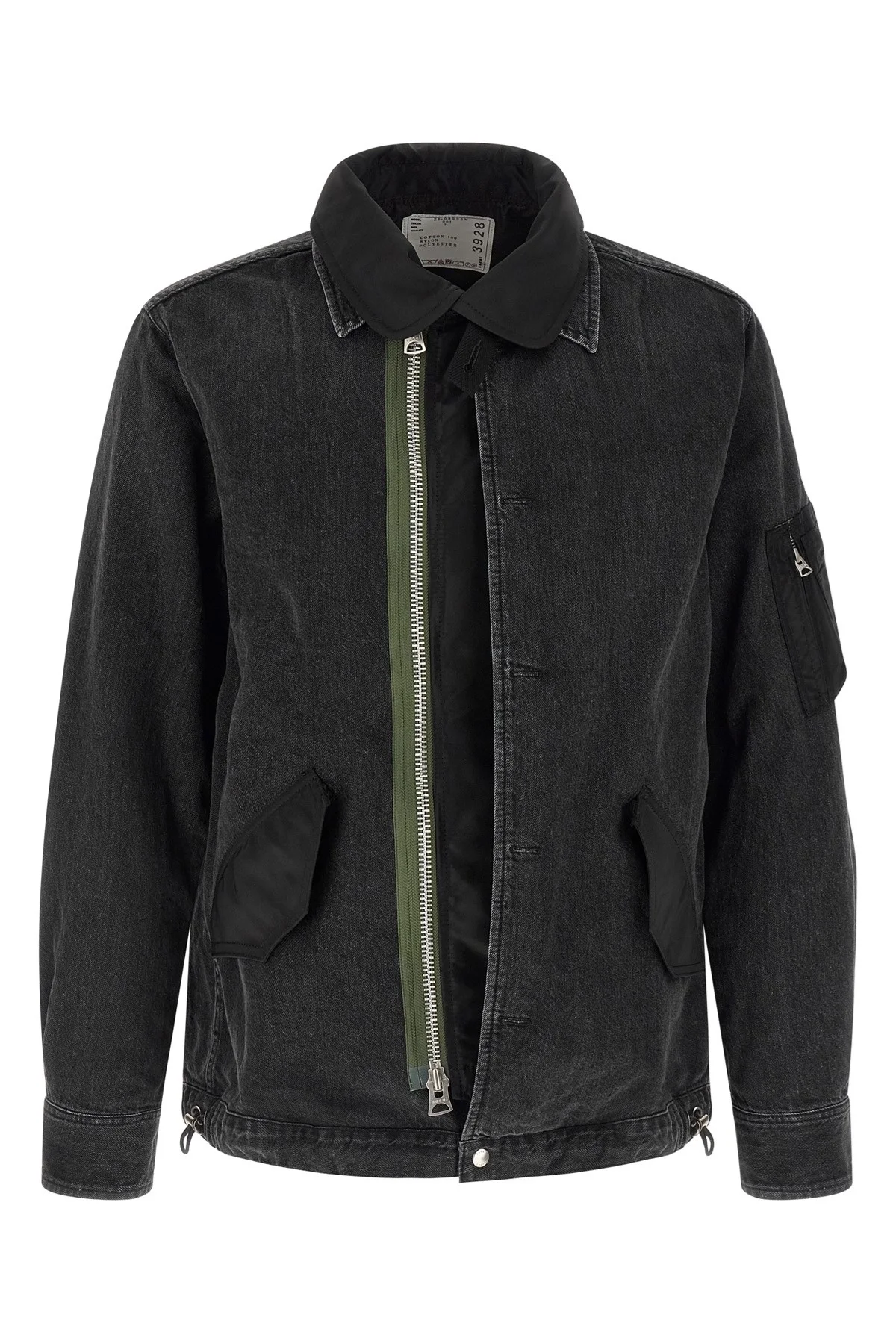 cod. 2603928M001 Garment-dyed cotton denim jacket, double layer nylon twill inserts on the front, shirt collar, adjustable asymmetric closure with zip and buttons on the front, pockets, long sleeves with cuffs and dropped shoulders, drawstring on the hem. Color: Black Size & Fit: oversized fit Composition: 100% cotton Made in: Japan