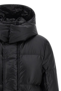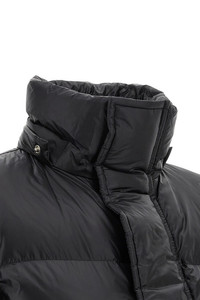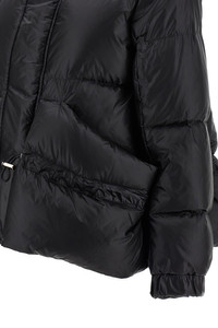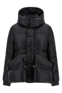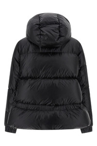 cod. 2508072001 Flared 'Puffer' quilted nylon quilted and goose feather padded jacket, removable hood, standing collar, front zip and snap button closure, pockets, long cuffed sleeves, drawstring at the waist and at the hem. Color: Black Size & Fit: true to size fit Composition: 100% nylon Made in: China