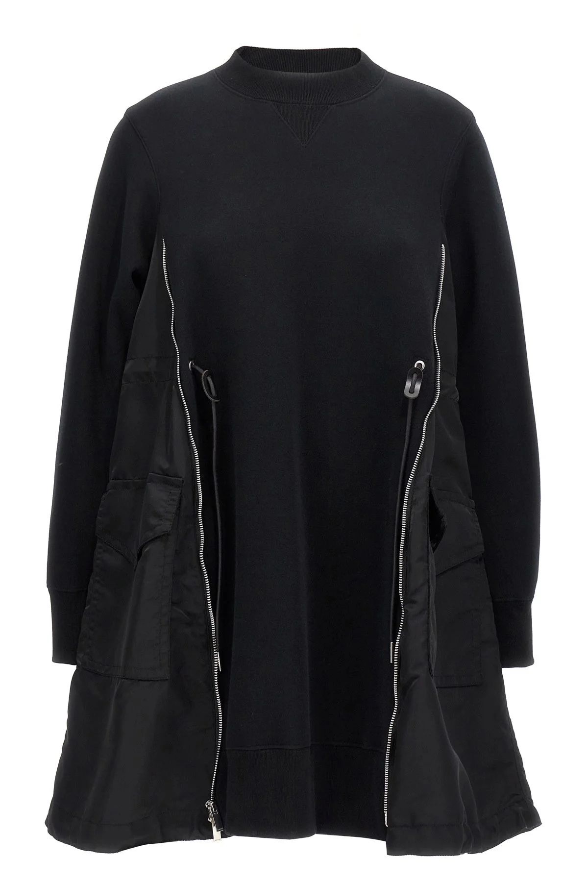 cod. SCW229002 'Sponge' cotton blend dress with nylon inserts, adjustable drawstring at the waist, pockets, long cuffed sleeves, crew neck, adjustable drawstring at the hem. Color: Black Size & Fit: true to size fit Composition: 62% cotton, 38% polyester Made in: Japan