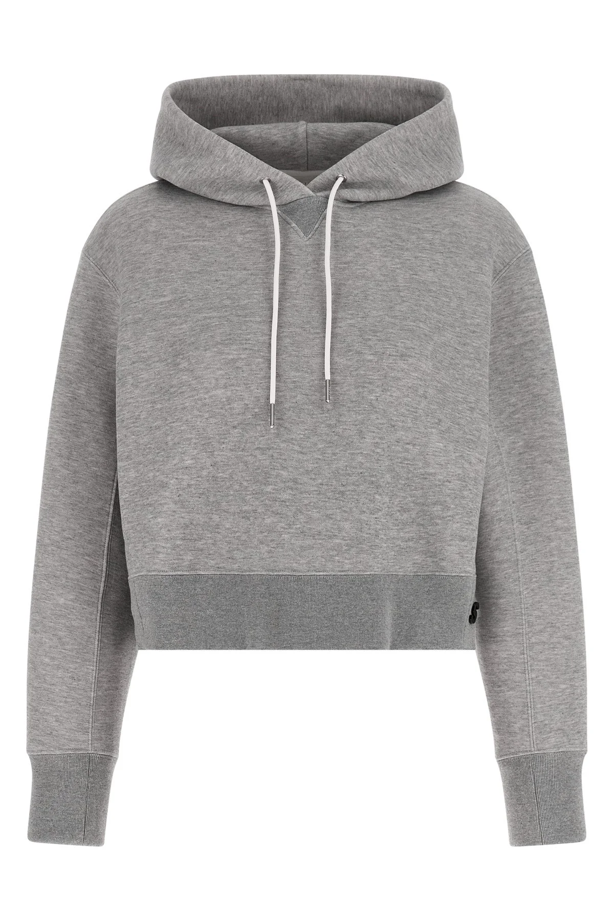 cod. SCW345376 'Sponge' cropped hoodie in melange cotton blend with removable tone-on-tone metal logo pin, long sleeves with cuffs and dropped shoulders, side slits with snap buttons. Color: Gray Size & Fit: Comfort fit Composition: 62% cotton, 38% polyester Made in: Japan
