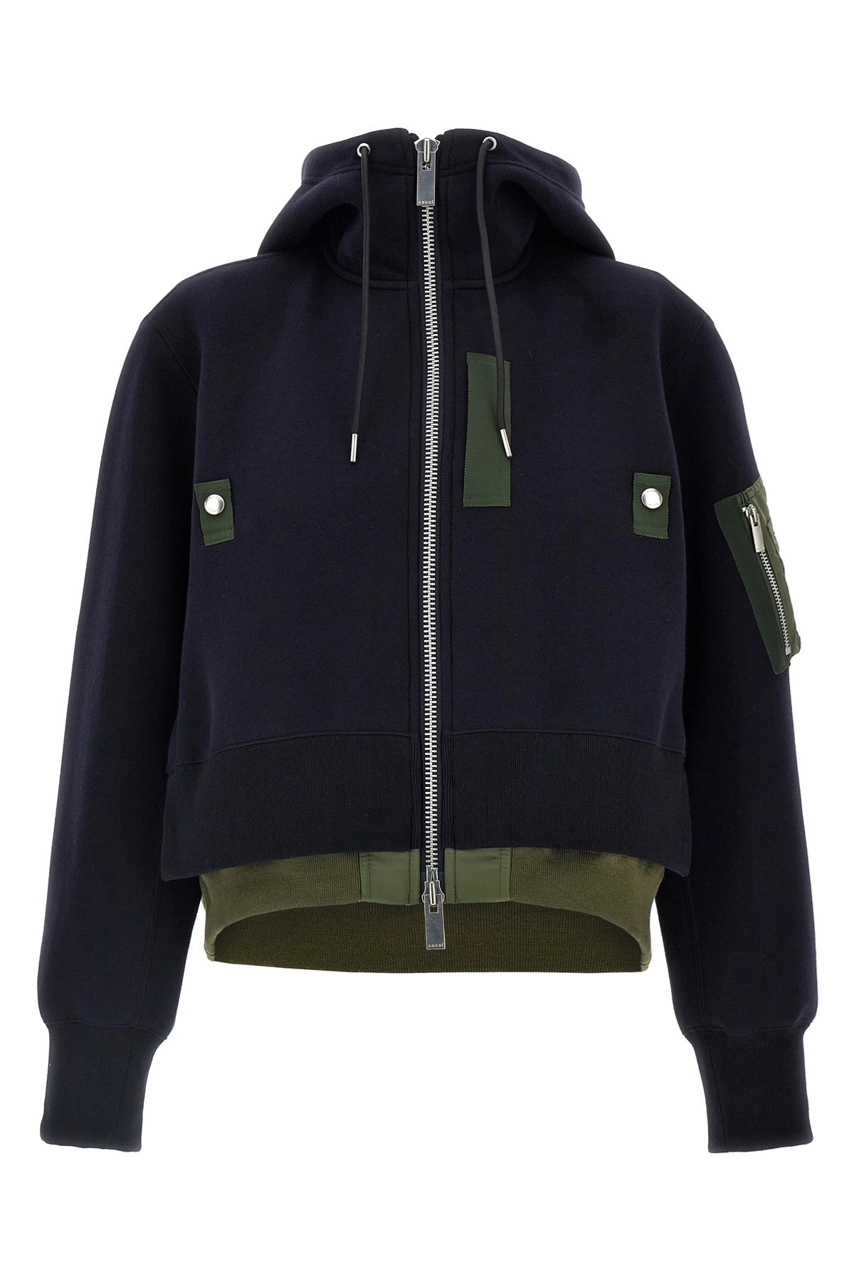 cod. SCW231212 'Sponge' cotton blend hoodie with nylon inserts, zip closure, pockets, long cuffed sleeves. Color: Multicolor Size & Fit: true to size fit Composition: 62% cotton, 38% polyester Made in: Japan