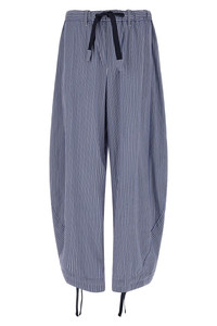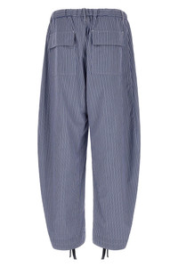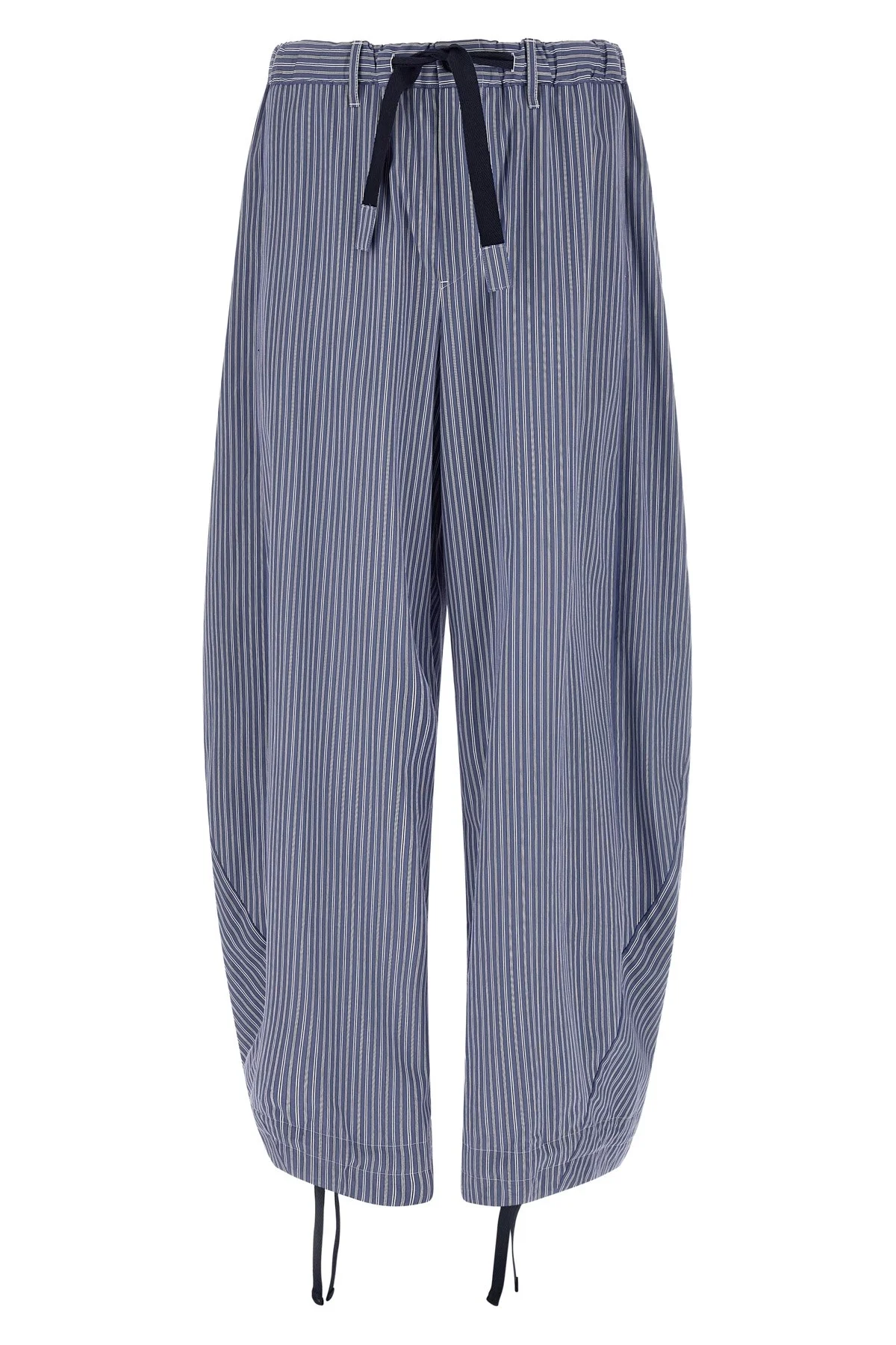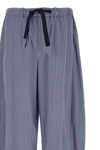 cod. 2603936M421 Striped cotton poplin pants, wide and curved leg at the hem, zip and front button closure, drawstring elastic waistband, pockets, drawstring on the leg bottoms. Color: Blue Size & Fit: true to size fit Composition: 100% cotton Made in: Japan
