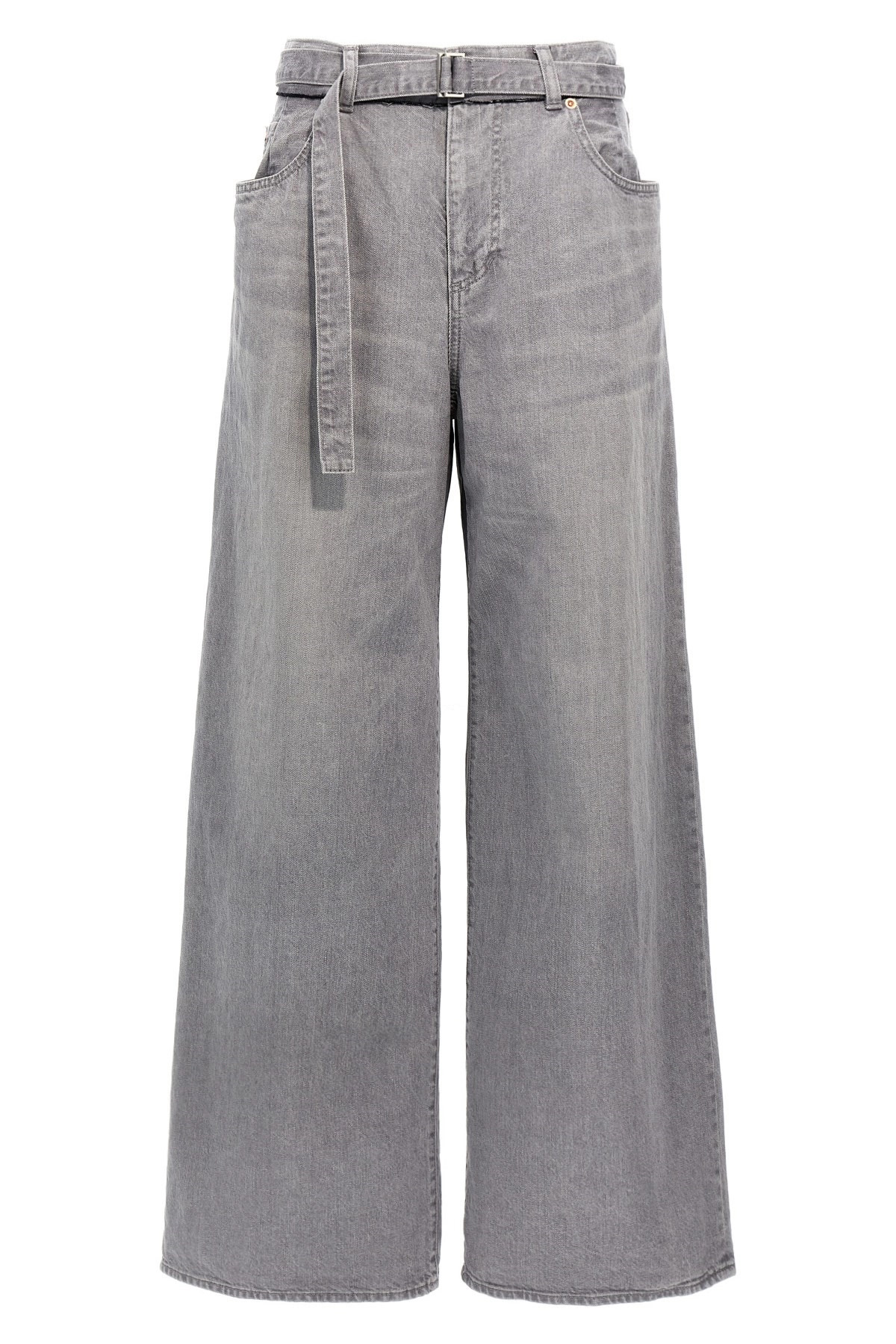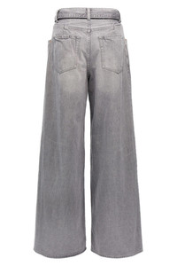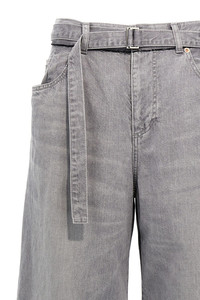 cod. SCW210301 'Wide' cotton denim jeans with flared wide leg, pockets, zip and button closure, adjustable and removable belt. Color: Gray Size & Fit: true to size fit Composition: 100% cotton Made in: Japan