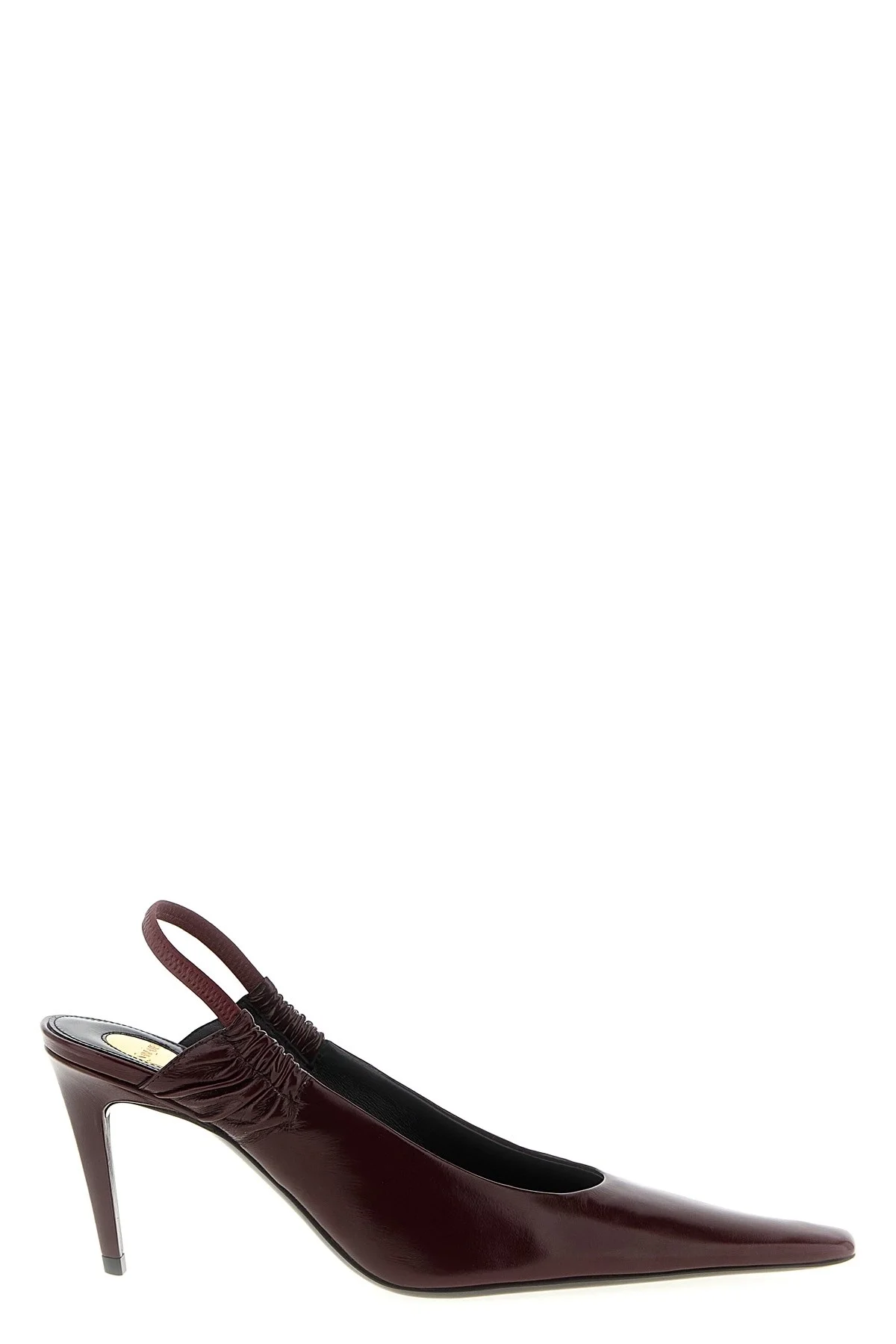 cod. 841183AAEHI6629 'Anne-Marie' smooth leather slingbacks with elongated square toe, elastic curled strap, oblique stiletto heel, leather sole. Color: Bordeaux Size & Fit: EU WOMAN - Heels: 7.5 cm Composition: 100% calfskin leather (Bos Taurus) Made in: Italy
