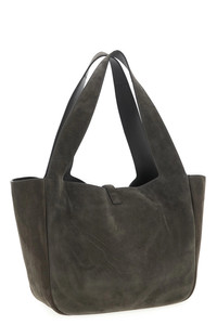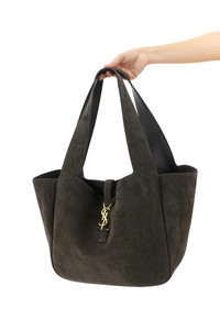 cod. 763435008IW1997 'Le 5 a 7 Bea' suede shoulder bag, double fixed handle, inner lace to modulate the capacity, closure with Cassandre metallic logo with antiqued interlocking effect. Color: Gray Size & Fit: W 50 x H 28 x D 18 cm Composition: 100% calfskin leather (Bos Taurus) Made in: Italy
