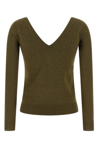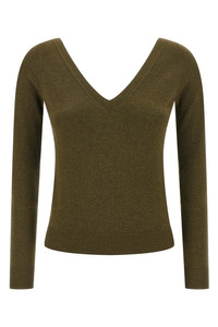 cod. 808068YALL21333 Cashmere sweater with wide V-neck front and back, long cuffed sleeves. Color: Green Size & Fit: true to size fit Composition: 100% cashmere Made in: Italy