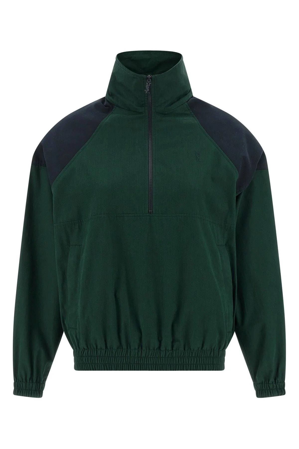 cod. 851250Y6J983020 Color-block cotton canvas jacket with tonal 'Cassandre' logo embroidery on the front, high neck, half-zip, pockets, long raglan sleeves with elastic cuffs, elastic hem, viscose and cotton lining. Color: Green Size & Fit: comfor tfit - FRENCH size Composition: 100% cotton Made in: Italy