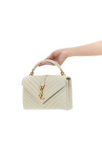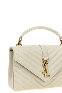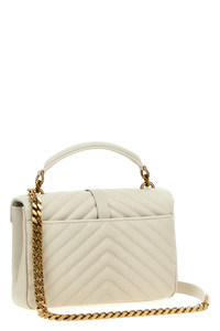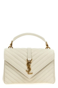 cod. 600279BRM079207 Leather 'College' crossbody bag, quilted, front brass logo, flap with magnetic closure, removable chain strap, leather handle. Color: White Size & Fit: W 24 x H 17 x D 6,5 cm Composition: 100%leather