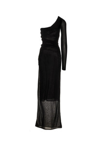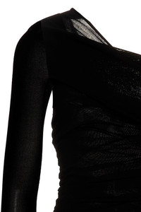 cod. 734466Y76AJ1000 Sleeveless dress with viscose blend draping on one side and long sleeves on the other. Color: Black Size & Fit: True to size fit Composition: 76% viscose 24% polyamide