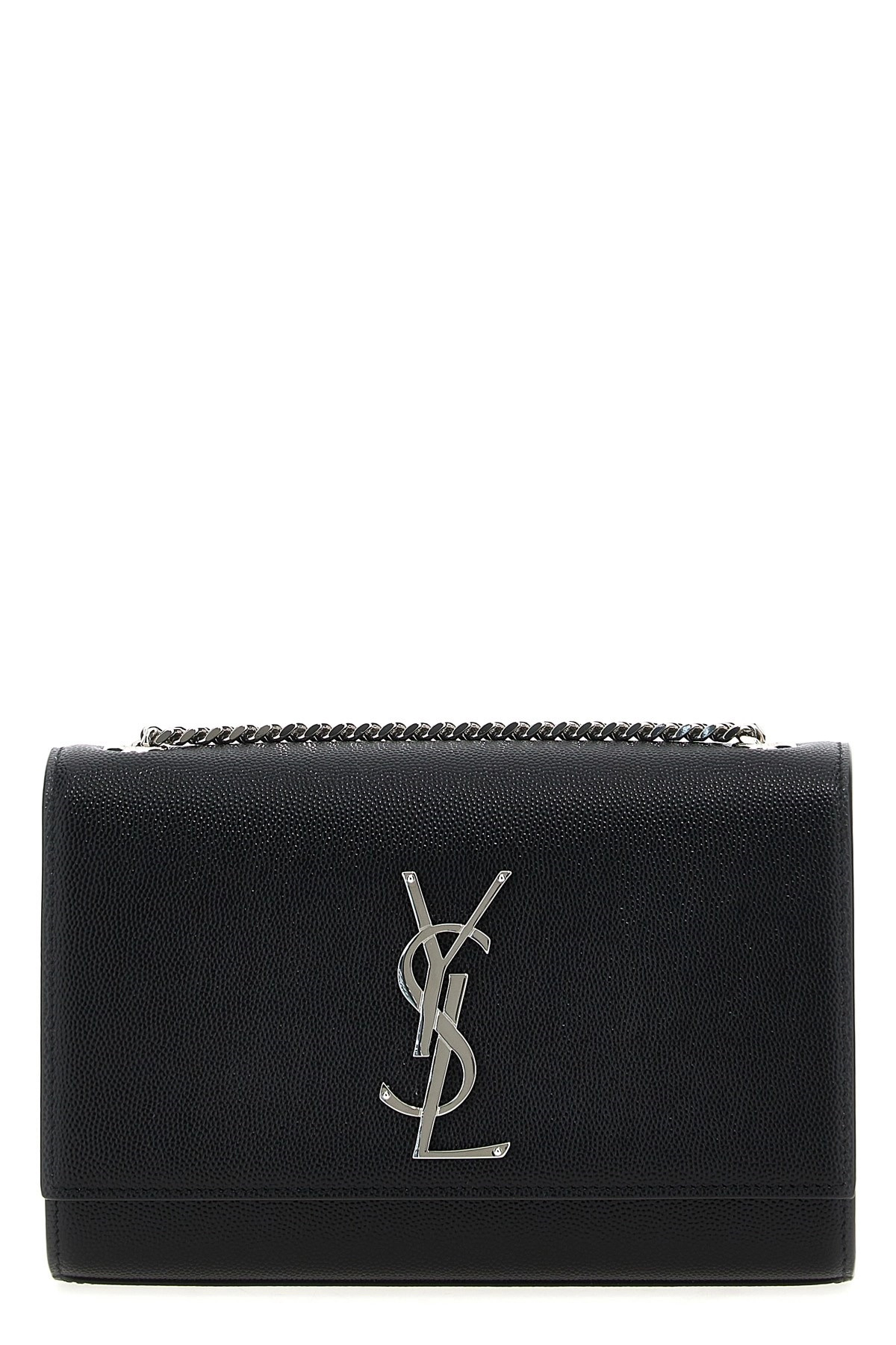 cod. 469390BOW0N1000 Grain de poudre leather 'Kate Small' crossbody bag, chain shoulder strap, magnetic flap closure with front metal logo applique. Color: Black Size & Fit: W 19.8 x H 12.4 x D 4.8 cm Composition: 100% calf leather (Bos Taurus) Made in: Italy