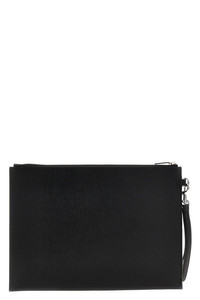 cod. 683865BTY0N1000 Leather I-Pad holder with front logo print, zip closure, removable wrist handle. Color: Black Size & Fit: W 29 x H 21 cm Made in: Italy
