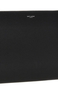 SAINT LAURENT PARIS ZIPPED TABLET HOLDER IN GRAIN DE POUDRE-LEATHER