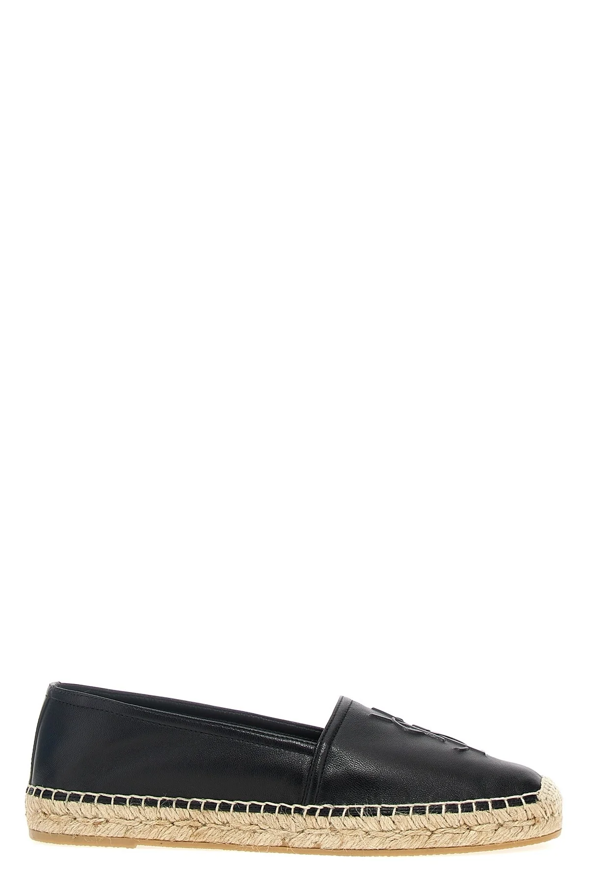 cod. 458573AAALP1000 Leather espadrilles with embossed tone-on-tone logo, straw midsole, rubber sole. Color: Black Size & Fit: EU WOMEN Composition: 100% lamb leather Made in: Spain PROMO CODE NOT APPLICABLE