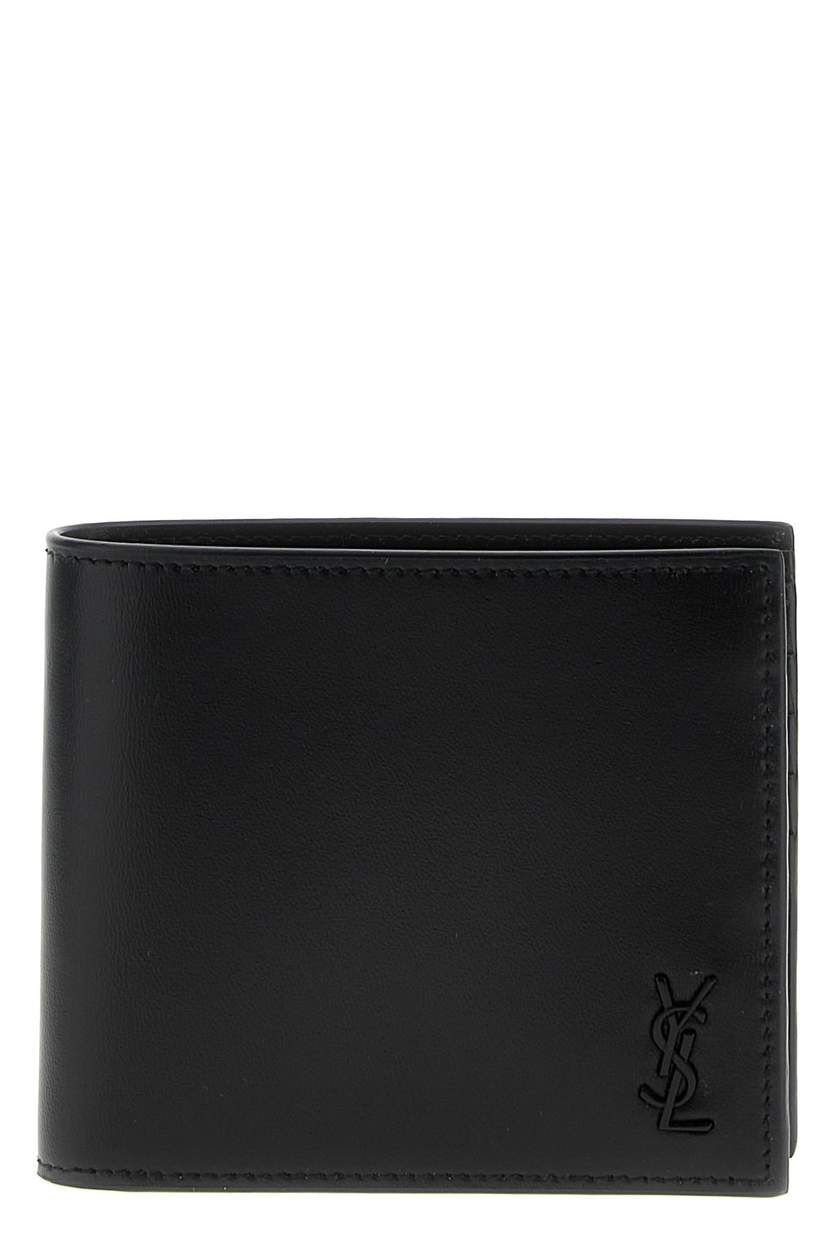 cod. 6077271JB0U1000 Black Leather 'Cuir Glace Mat' smooth leather On-tone 'YSL' logo Book closure Color: Black Size & Fit: W 11 x H 9.5 x D 2.5 cm Composition: 100%calf leather(Bos Taurus)