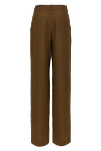 cod. 820232Y6K802603 Viscose twill pants, jacquard 'Medaglioni' pattern, slightly loose fit, straight leg, front zip and hook closure, side pockets. Color: Beige Size & Fit: True to size fit French sizing Composition: 48% ac, 38% vi, 14% pl Made in: Italy
