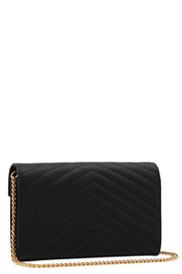 cod. 377828BOW011000 Saint Laurent iconic matelassé grain de poudre leather bag featuring a gold metal logo and a chain shoulder strap. Color: Black Size & Fit: W 22.5 x H 14 x D 4 cm Shoulder strap: 48 cm Composition: 100% calf leather (bos taurus) PROMO CODE NOT APPLICABLE
