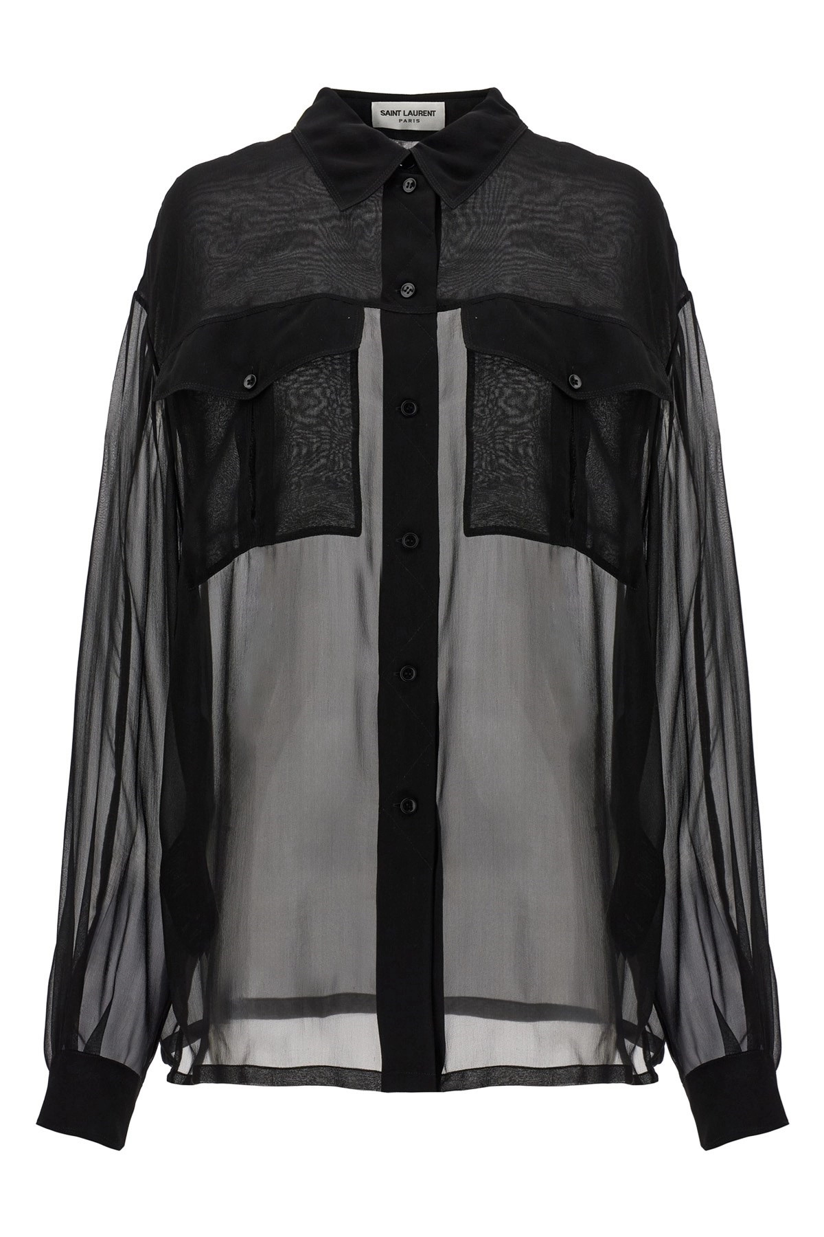 cod. 788262Y115W1000 Semi-transparent silk muslin shirt, front pockets, long cuffed sleeves. Color: Black Size & Fit: true to size fit Composition: 100% silk