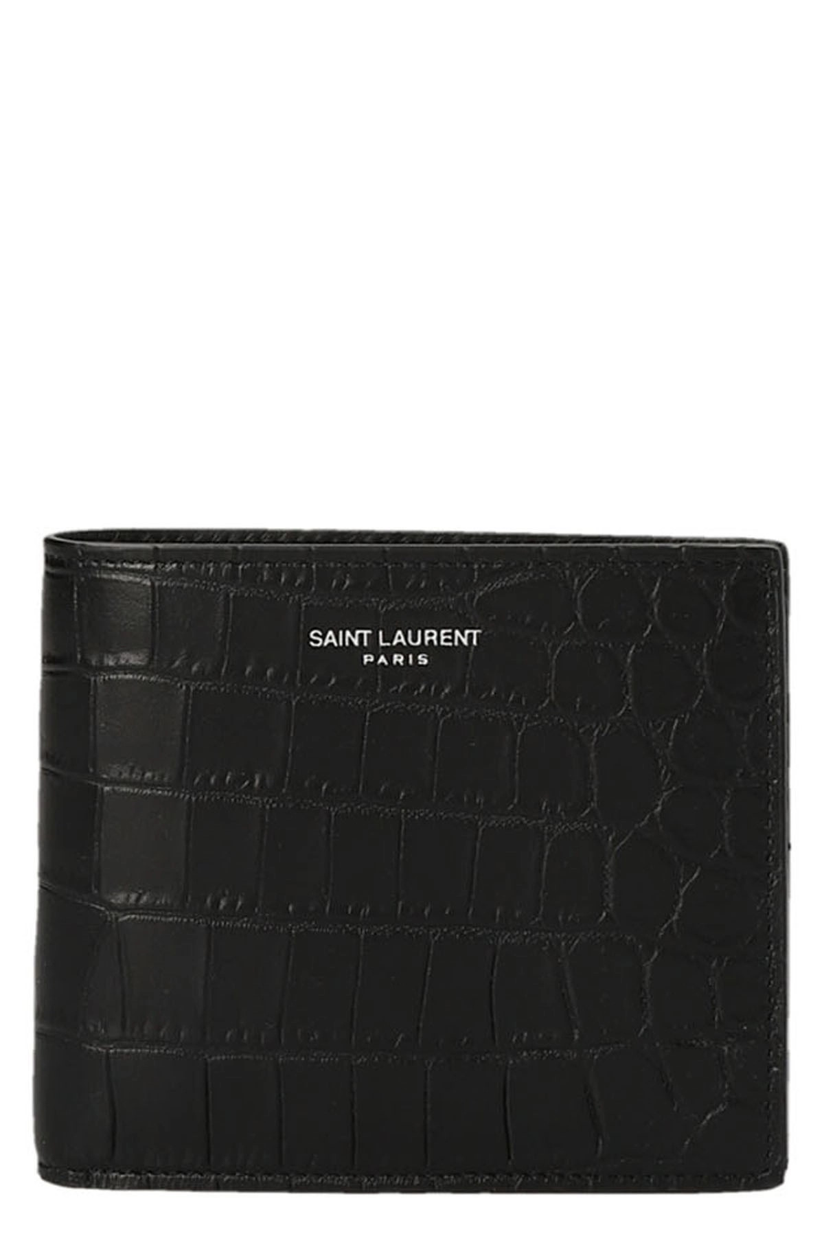 SAINT LAURENT PARIS EAST/WEST WALLET WITH COIN PURSE IN CROCODILE-EMBOSSED LEATHER