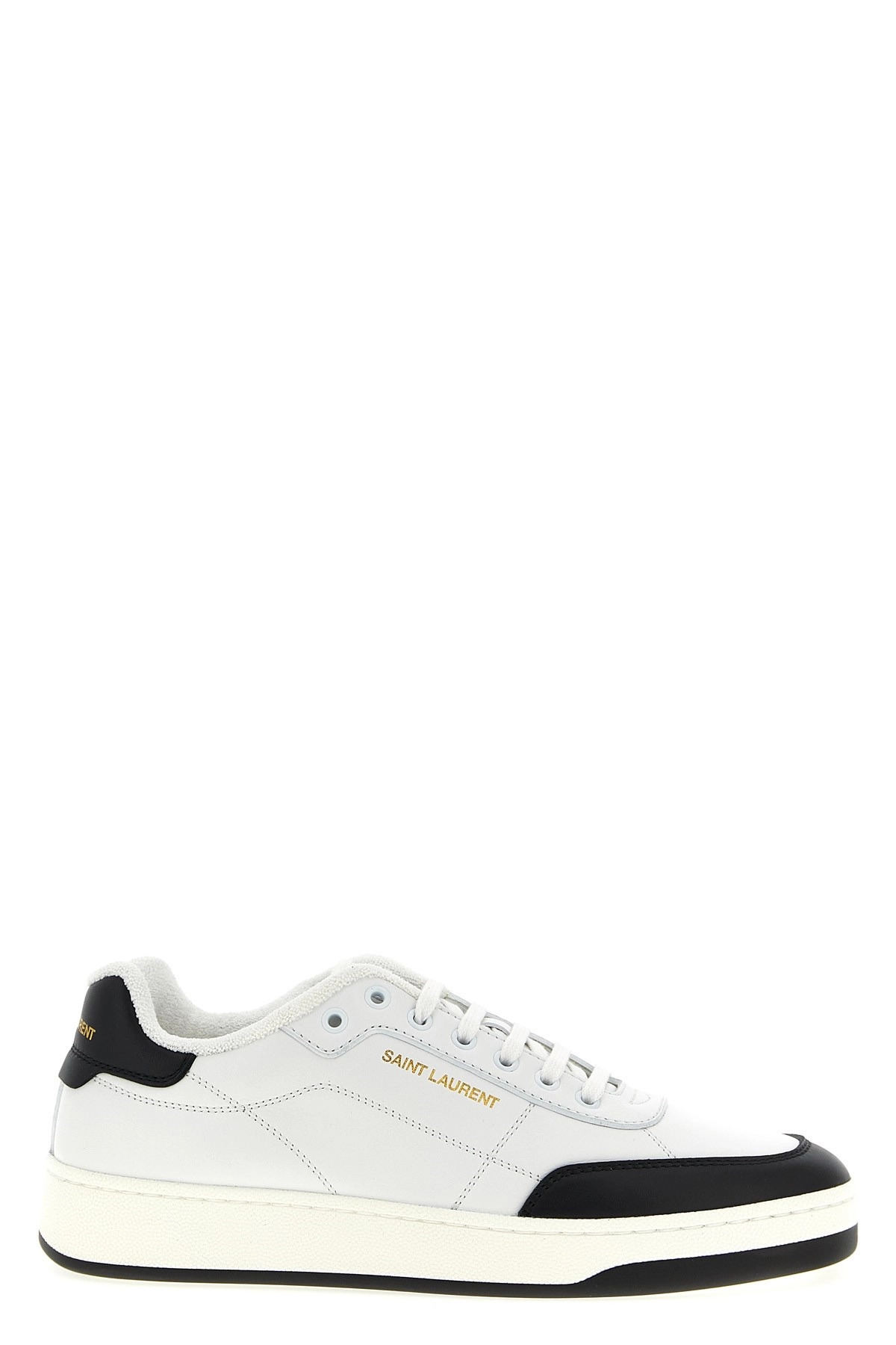 cod. 84553700NI09061 'SL/61' smooth leather sneakers with contrast details, embossed logo on the side and tongue, lace-up closure, terry lining, rubber sole. Color: White/Black Size & Fit: EU MEN Composition: 100% calfskin leather (Bos Taurus) Made in: Italy