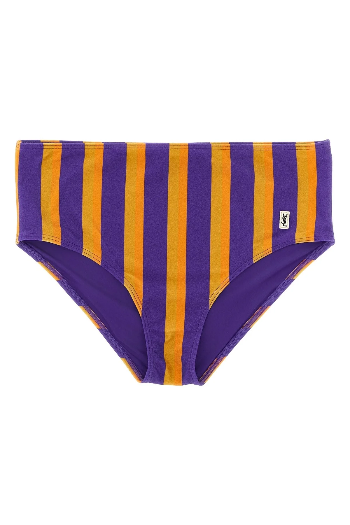 cod. 859366Y38CZ5571 Bikini bottoms in technical fabric with vertical stripes, high waist, front logo patch, classic cover. Color: Multicolor Size & Fit: true to size fit Composition: 80% polyamide, 20% elastane Made in: Italy
