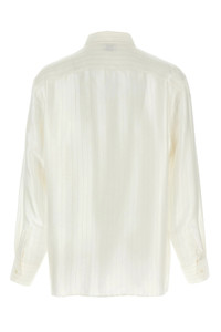 cod. 819096Y2L919988 Striped satin pique shirt, concealed front button closure, long sleeves with cuffs and dropped shoulders. Color: White Size & Fit: Comfort fit COLLAR size Composition: 98% silk, 2% polyester Made in: Italy