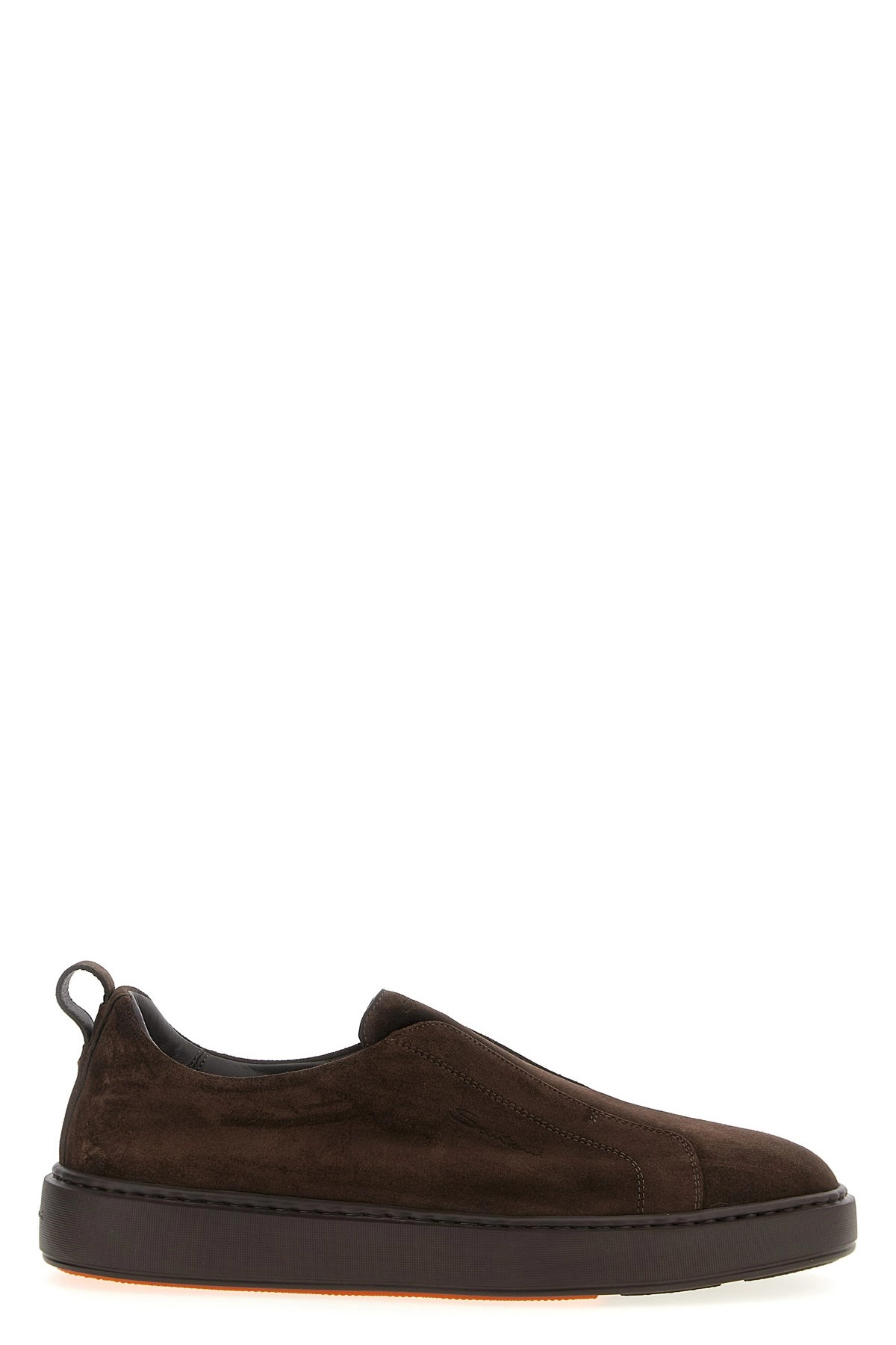 cod. MBCD21995SMOTSEYT50T50 'Victory' suede sneakers, slip-on model with flexible rubber box sole. Color: Brown Size & Fit: UK MEN Composition: 100% calfskin leather (Bos Taurus) Made in: Italy