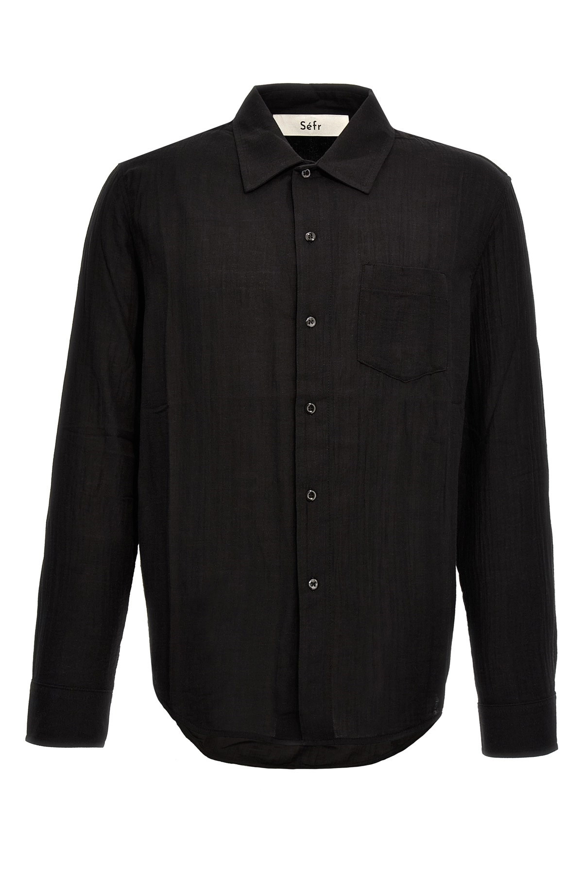 cod. FW23LEOLIGHTBLACK 'Leo' cotton voile shirt with front pocket, button closure, long cuffed sleeves. Color: Black Size & Fit: true to size fit Composition: 100% cotton Made in: Latvia