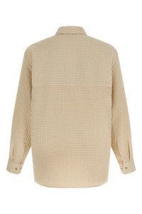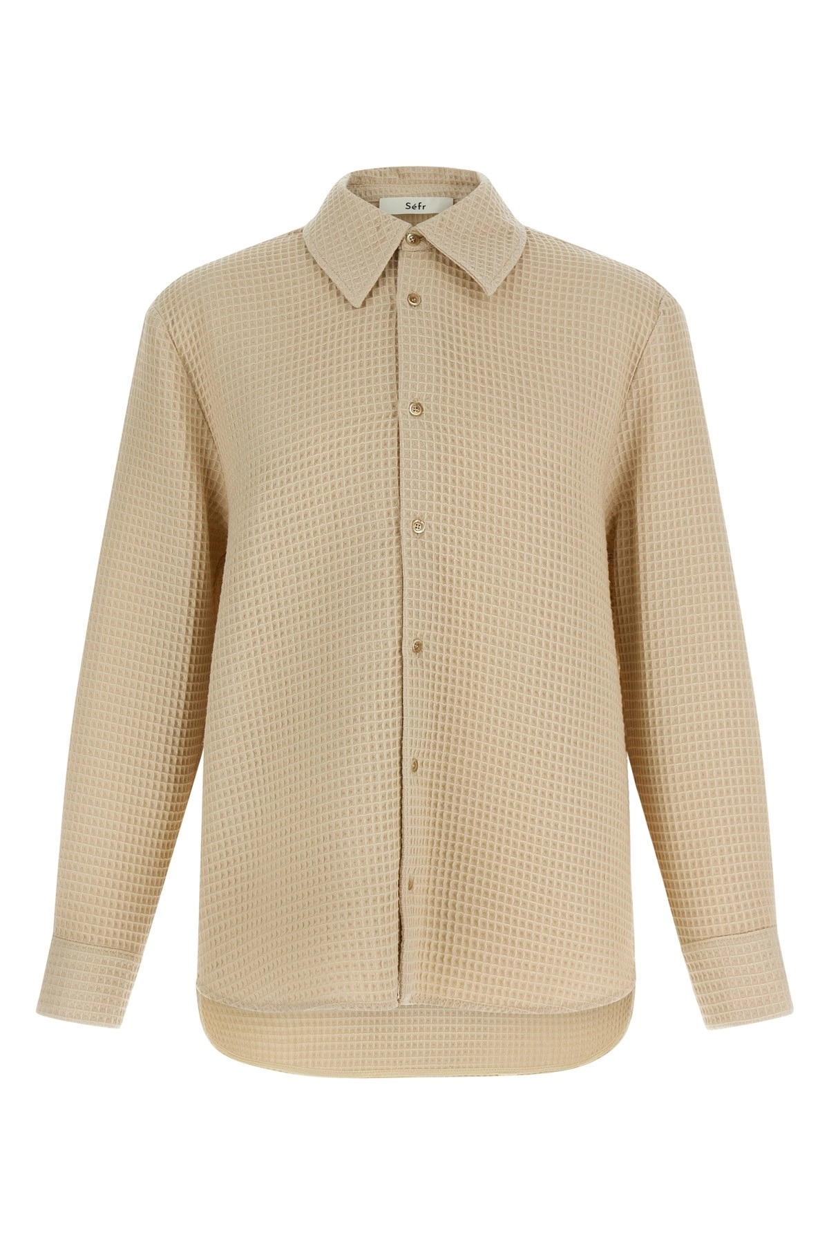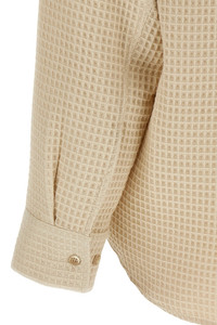 cod. MFW25OSEARYIVORYWAFFLE 'Oseary' waffle knitted cotton fabric overshirt, wide pointed collar, front button closure, long cuffed sleeves and slightly dropped shoulders. Color: Beige Size & Fit: Relaxed fit Composition: 100% cotton Made in: North Macedonia